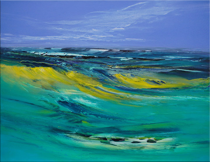 Licht, Farbe und Raum sind bestimmende Elemente meiner Malerei, ebenso das Spiel mit Horizont, Perspektive und Fluchtpunkt. Der Betrachterstandpunkt wird bei vielen Werken in eine spannungsreiche, schwebende Unwegbarkeit/Unwägbarkeit versetzt, was verschiedene und immer wieder andere Lesearten zulässt.